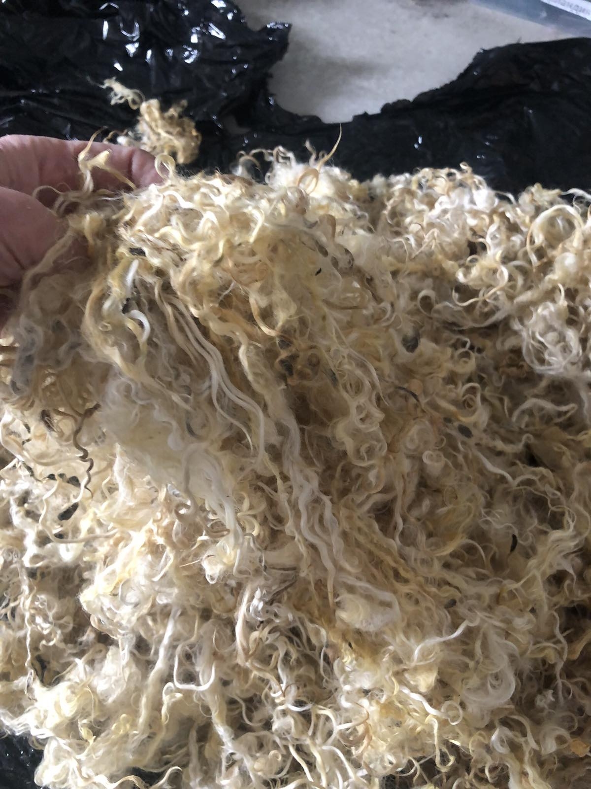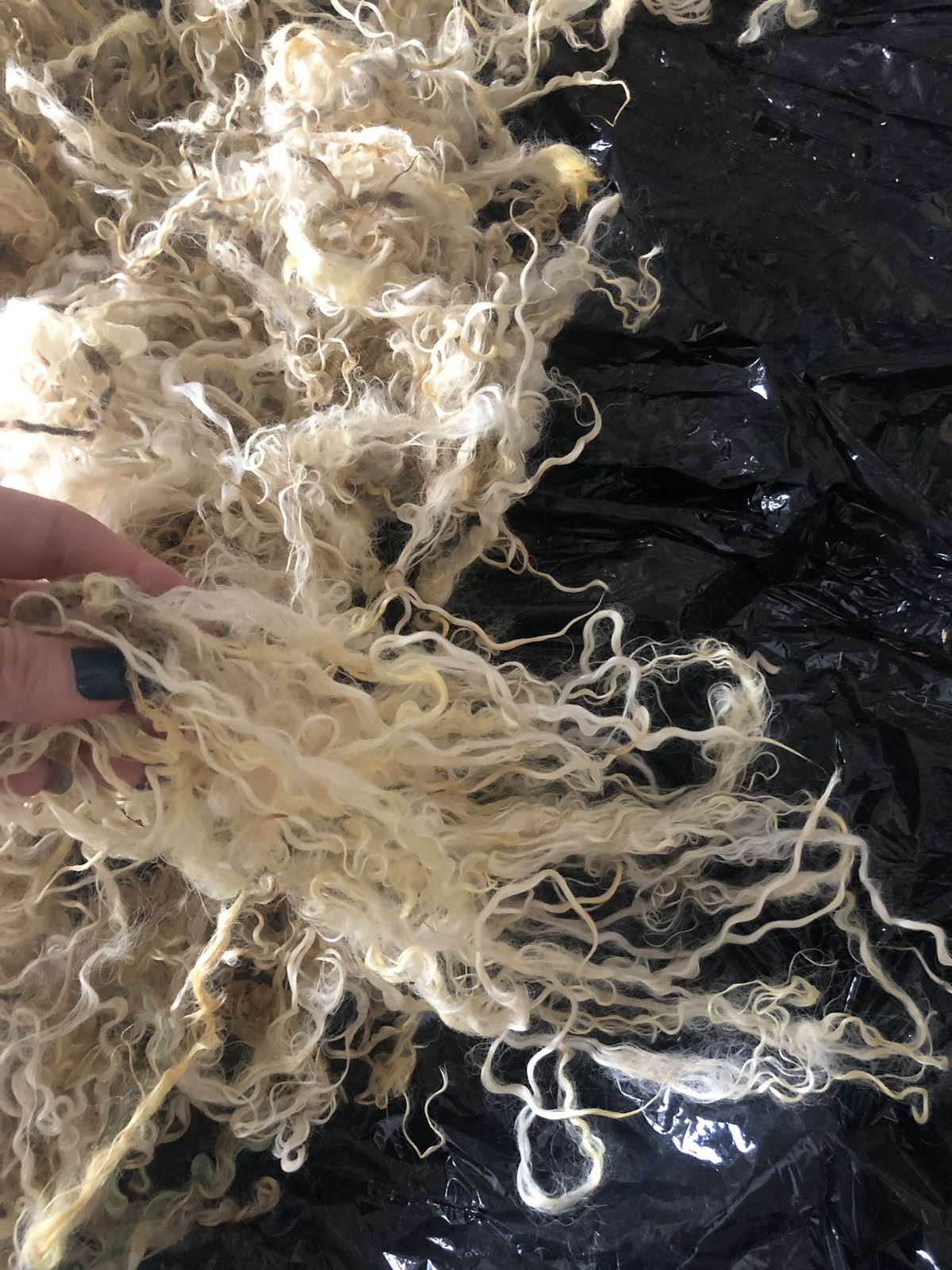 Фліс Венслідейл Wensleydale. Підходить для декорування виробів, дає красиву фактуру, з їх допомогою можна акуратно та багато прикрасити краї шарфу або палантину, сумочку та інший аксесуар чи предмет одягу. Підходить для лялькового волосся. Фліс промитий один раз, має місцями жовтий колір і має натуральний запах! Ідеальний під фарбування