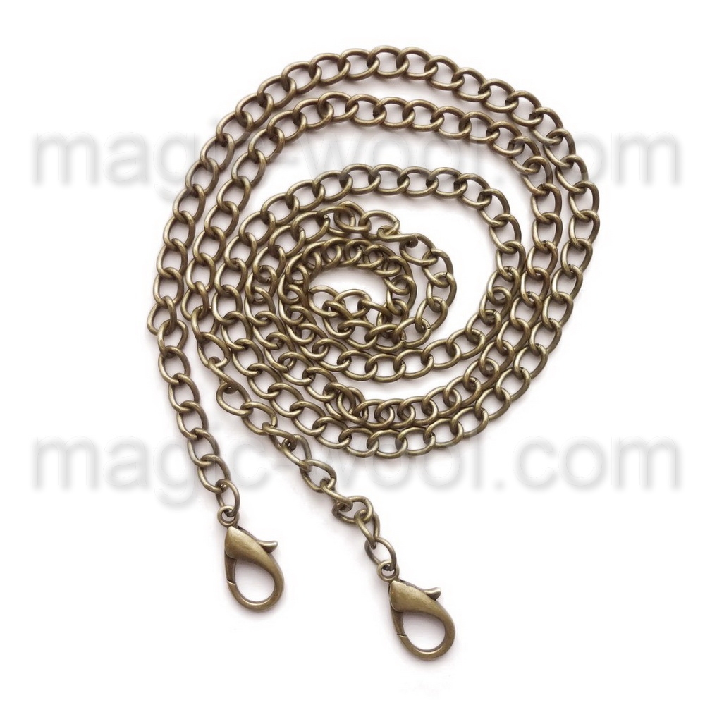 Фигурная металлическая цепочка для сумочки с рамочным замком. Легко можно подогнать до нужного размера, отсоединив лишние звенья.