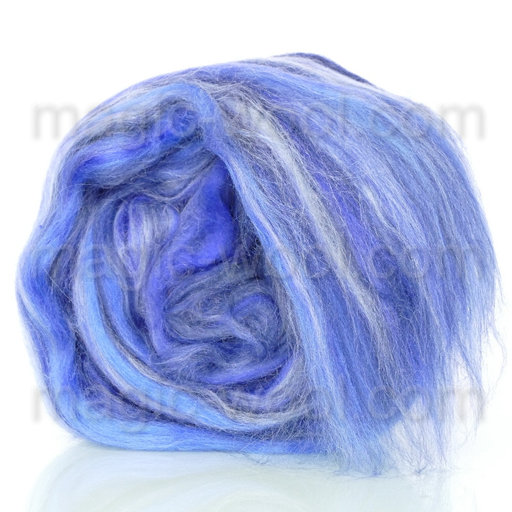 Бленд из шерсти и шелка в насыщенных ярких переходах. Многоцветные бленды очень хорошо подходят для мокрого валяния, техники нунофелтинг, особенно — для деликатных изделий: шарфов, палантинов, предметов одежды, головных уборов и др, так как очень приятен к телу. А также отличный материал для прядения. Бленды можно аккуратно растянуть в ширину и получить красивейшую поверхность из цветных полос или паутинку для палантина. А можно создать мраморный эффект из оттенков бленда, выложив его прядями. Устойчиво окрашены. Яркие многоцветные переходы, станут для Вас неиссякаемым источником вдохновения. Красивые сочетания цветов позволят создать поистине самые смелые дизайнерские решения интересные цветовые решения.